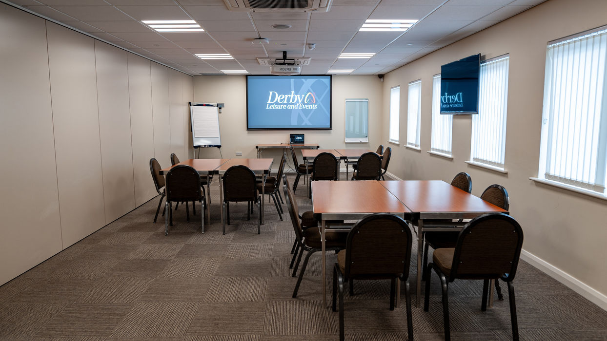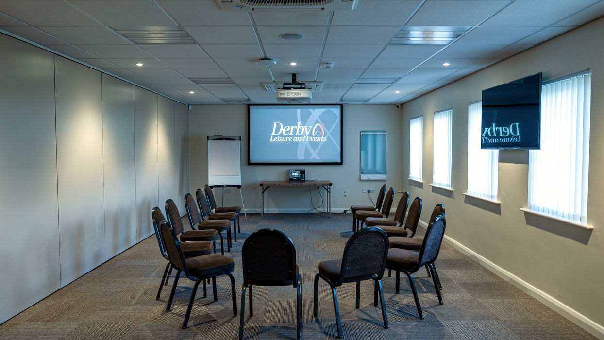 Our most modern and versatile room with the unique feature of a dividing internal wall enabling the conference room to be either one large room or two separate, sound proofed smaller rooms. Windows along both external walls provide plenty of natural light. This room also has the added benefit of dual screens and TVs, allowing perfect visibility for all your delegates.